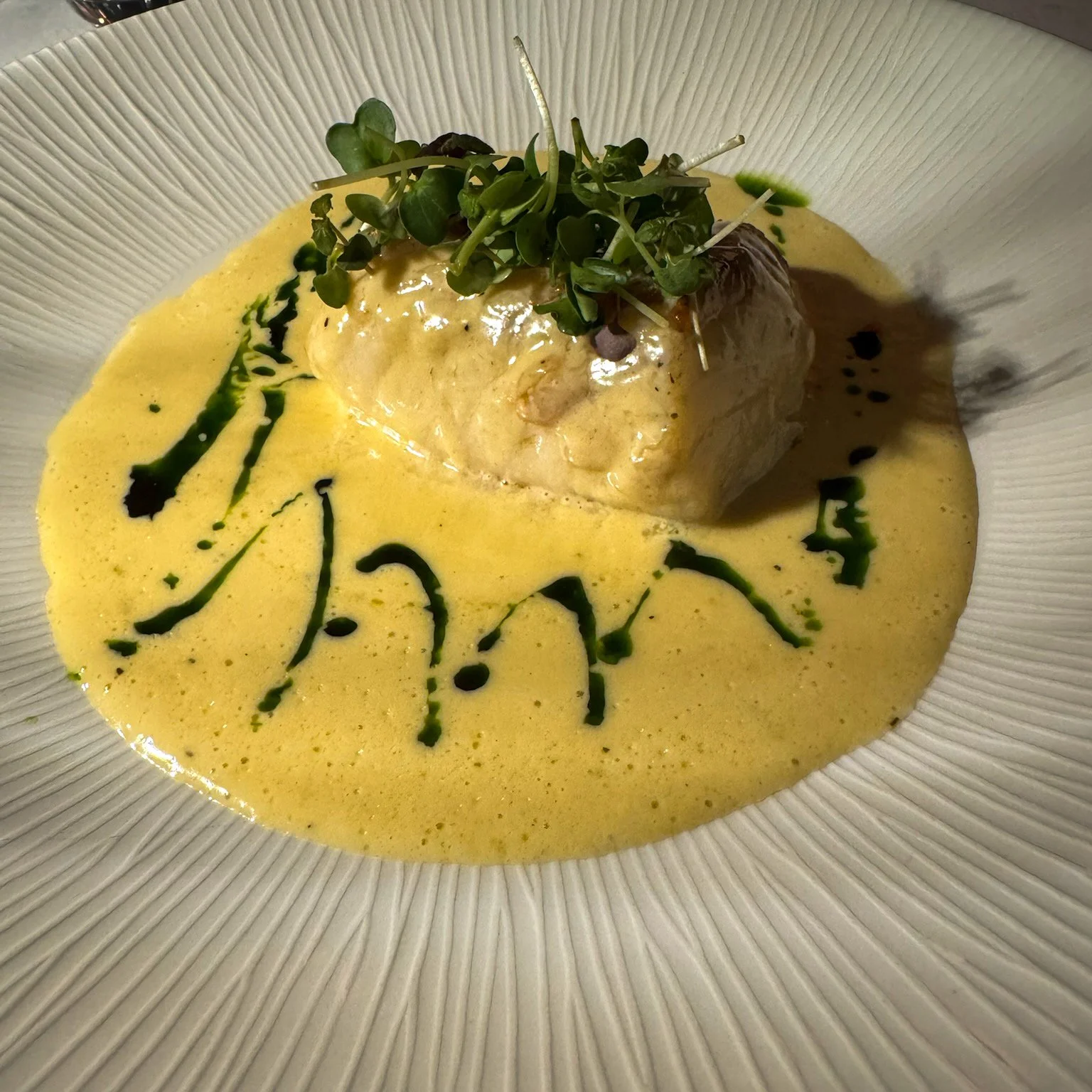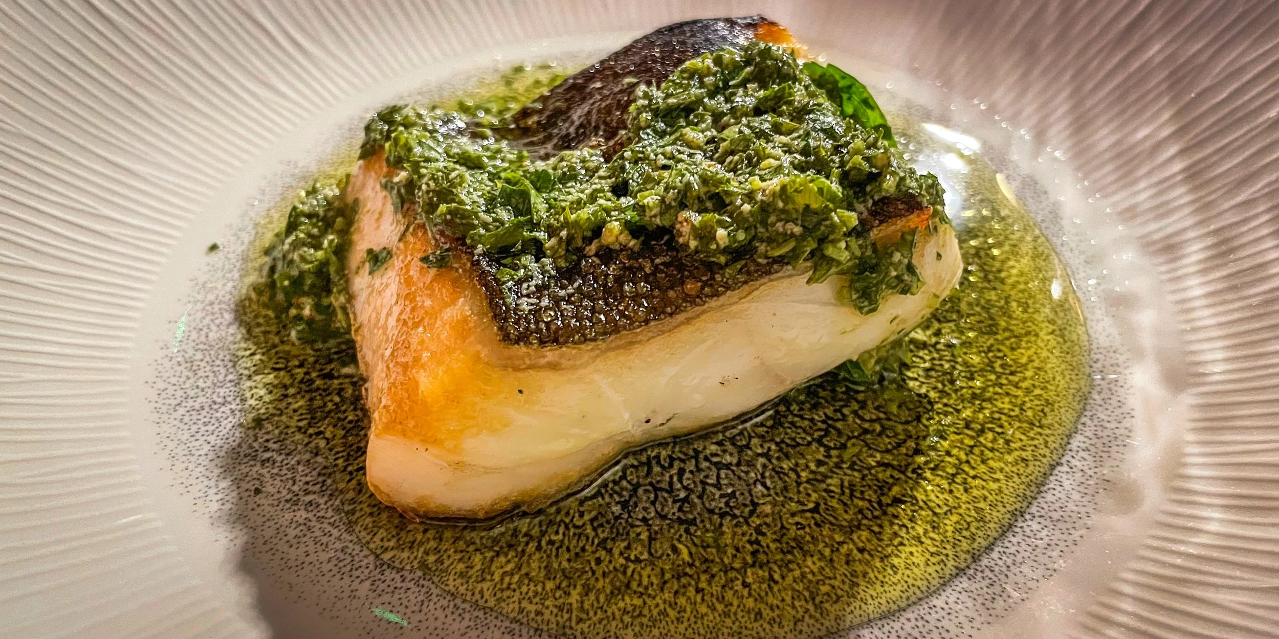The halibut arrived with salsa verde and crispy skin – light and fresh.