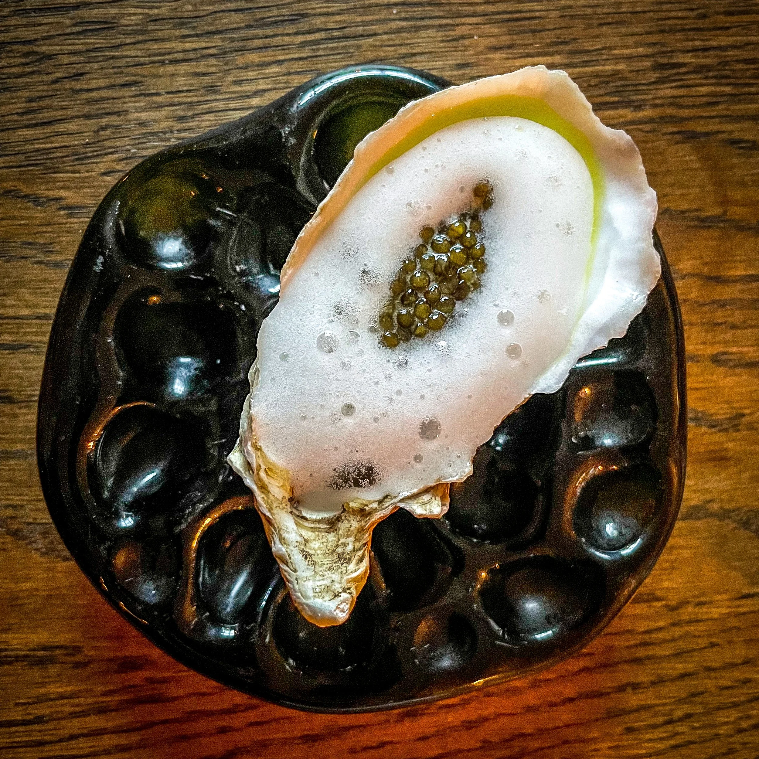 The evening began with a whisper of the sea — a single oyster, crowned with caviar and a soft foam that dissolved as it touched the tongue.