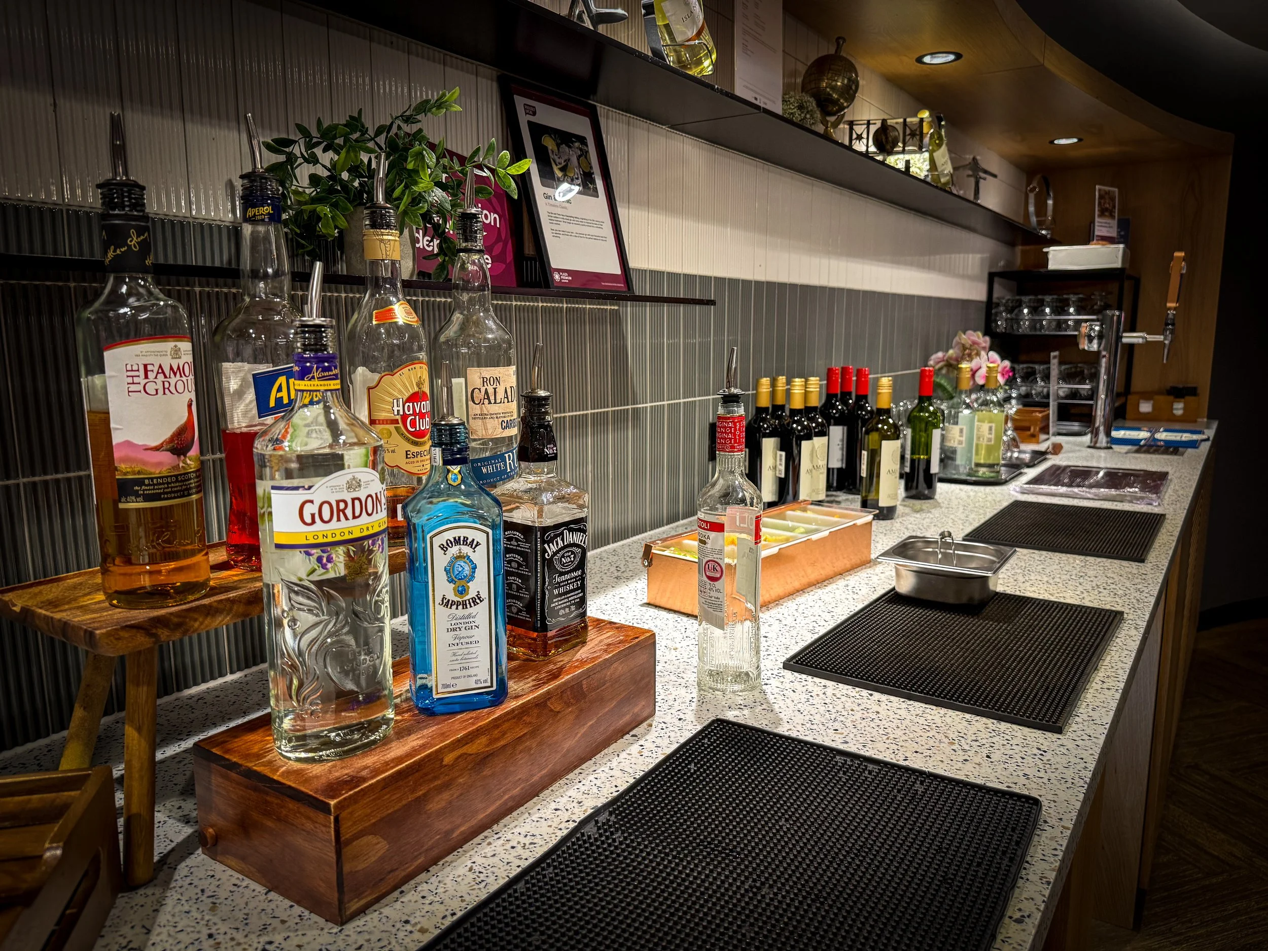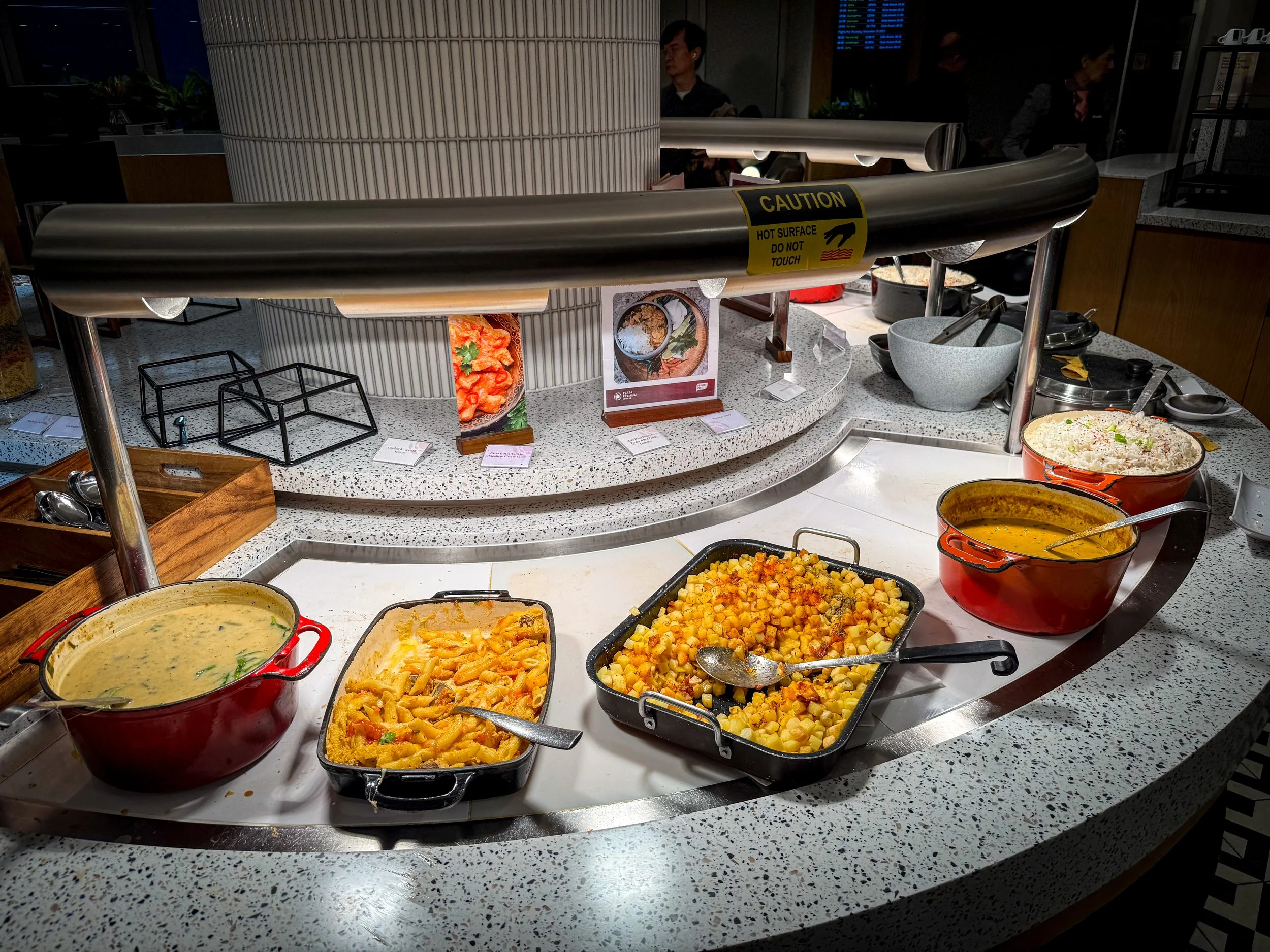 At Heathrow the Sky Priority Lounge offered its usual comforts: a self-made G&T, a fresh pasta bake if you time it right, and chairs designed for quiet survival rather than pleasure. But they have power outlets, and that really makes a difference.